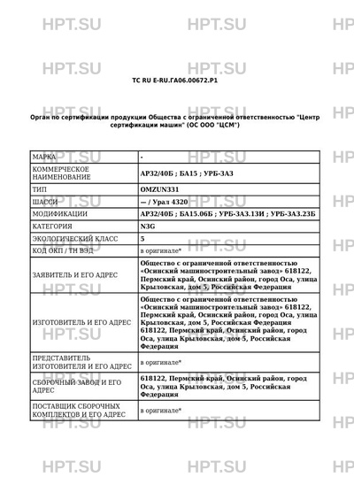 | Номер документа | ТС RU Е-RU.ГА06.00672.Р1 |