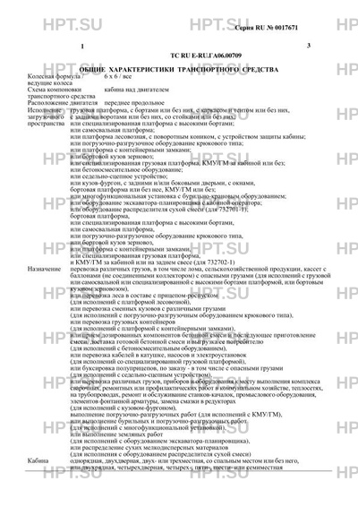 Оборудование ТС устройство вызова экстренных оперативных служб с функцией автоматического срабатывания при опрокидывании, устройство ограничения максимальной скорости (функцию устройства ограничения максимальной скорости выполняет электронный блок управления двигателем), устройства освещения рабочей зоны, устройства увязки; по заказу: тент, предпусковой подогреватель двигателя, кондиционер, передние противотуманные фары, лебедка, один или два проблесковых маячка автожелтого цвета