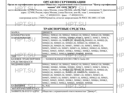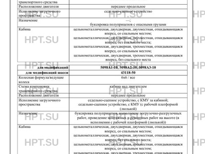 | Оборудование ТС | устройство ограничения максимальной скорости (функцию устройства ограничения максимальной скорости выполняет электронный блок управления двигателем); дневные ходовые огни; устройство вызова экстренных оперативных служб с функцией автоматического срабатывания при опрокидывании; один или два проблесковых маячка автожелтого цвета (для 5098A1, 5098A2, 5098A3 в исполнении для перевозки опасных грузов) по заказу: предпусковой подогреватель двигателя; лебедка; кондиционер; передние противотуманные фары (кроме модификаций на шасси, имеющих официальное утверждение на основании Правил ООН № 48-04); тахограф; аппаратура спутниковой навигации; дополнительные баллоны для питания силового агрегата установки для перевозки компримированного природного газа массой до 420 кг (для модификации 5098М5); отопитель; рабочая платформа (люлька) (для модификаций 5098D1-30, 5098D2-30, 5098D3-30, 5098D5-30) |