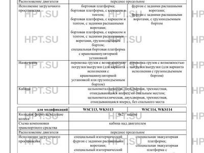 | Исполнение загрузочного пространства | бортовая платформа; бортовая платформа, с каркасом и тентом; бортовая платформа, с каркасом и тентом, с задними распашными воротами; бортовая платформа, с каркасом и тентом, с задними распашными воротами, грузоподъемным бортом; специальная бортовая платформа с краноманипуляторной установкой фургон с задними распашными воротами; фургон с задними распашными воротами, с грузоподъемным бортом специальный изотермический фургон с задними распашными воротами; специальный изотермический фургон с задними распашными воротами, с грузоподъемным бортом; специальный фургонрефрижератор с задними распашными воротами; специальный фургонрефрижератор с задними распашными воротами, с грузоподъемным бортом специальная эвакуаторная платформа; специальная эвакуаторная платформа с краноманипуляторной установкой кузов-фургон специальный с боковой одностворчатой дверью; кузов-фургон с задней одностворчатой дверью; кузов-фургон специальный с боковой одностворчатой дверью, с окнами; кузов-фургон с задней одностворчатой дверью, с окнами; кузов-фургон с задней одностворчатой дверью, с боковой одностворчатой дверью; кузов-фургон с задней одностворчатой дверью, с боковой одностворчатой дверью, с окнами |