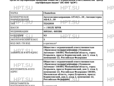 Коммерческое наименование Автотопливозаправщик АТЗ-8,5…10; Автоцистерна АЦ-8,5…10