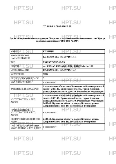Коммерческое наименование КС-65719-1К; КС-65719-1К-1