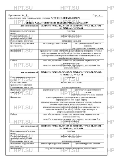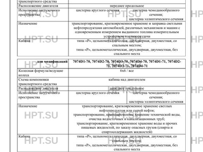 | Оборудование ТС | централизованная система регулирования давления воздуха в шинах; устройство вызова экстренных оперативных служб с функцией автоматического срабатывания при опрокидывании; устройство ограничения максимальной скорости (функцию устройства ограничения максимальной скорости выполняет электронный блок управления двигателем); дневные ходовые огни (для транспортных средств соответствующих требованиям Правил ООН № 48-04); один или два проблесковых маяка оранжевого цвета, цепь заземления, защита топливных баков и аккумуляторных батарей, огнетушители (для транспортных средств в исполнении для перевозки опасных грузов); топливозаправочное оборудование и счетчик жидкости (для 7074D1-60, 7074D2-60, 7074D3-60, 7074D4-60, 7074D1-61, 7074D2- 61, 7074D3-61, 7074D4-61) по заказу: коробки отбора мощности; предпусковой подогреватель двигателя; лебедка; держатель запасного колеса; аппаратура спутниковой навигации; тахограф; дополнительное устройство ограничения максимальной скорости; один или два проблесковых маяка оранжевого цвета (для 7074D1-70, 7074D2-70, 7074D3-70, 7074D4-70, 7074D1-71, 7074D2-71, 7074D3-71, 7074D4-71, 7074D1- 90, 7074D2-90, 7074D3-90, 7074D4-90, 7074D1-91, 7074D2-91, 7074D3-91, 7074D4-91); рукав для подачи воды (для 7074D1-70, 7074D2-70, 7074D3-70, 7074D4-70, 7074D1-71, 7074D2-71, 7074D3- 71, 7074D4-71); барабан для рукавов (для 7074D1-70, 7074D2-70, 7074D3-70, 7074D4-70, 7074D1-71, 7074D2-71, 7074D3-71, 7074D4- 71); поворотная консоль (для 7074D1-80, 7074D2-80, 7074D3-80, 7074D4-80, 7074D1-81, 7074D2-81, 7074D3-81, 7074D4-81, 7074D1- 90, 7074D2-90, 7074D3-90, 7074D4-90, 7074D1-91, 7074D2-91, 7074D3-91, 7074D4-91); гидравлический привод открывания/закрывания заднего днища цистерны (для 7074D1-80, 7074D2-80, 7074D3-80, 7074D4-80, 7074D1-81, 7074D2-81, 7074D3- 81, 7074D4-81, 7074D1-90, 7074D2-90, 7074D3-90, 7074D4-90, 7074D1-91, 7074D2-91, 7074D3-91, 7074D4-91); гидравлический привод подъема/опускания цистерны (для 7074D1-80, 7074D2-80, 7074D3-80, 7074D4-80, 7074D1-81, 7074D2-81, 7074D3-81, 7074D4- 81, 7074D1-90, 7074D2-90, 7074D3-90, 7074D4-90, 7074D1-91, 7074D2-91, 7074D3-91, 7074D4-91) |