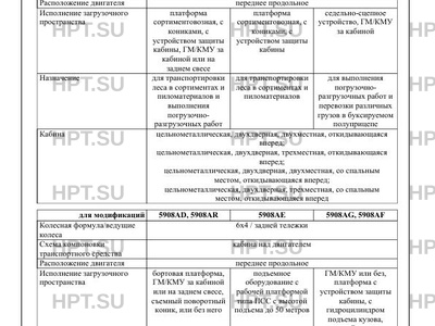 | Исполнение загрузочного пространства | платформа сортиментовозная, с кониками, с устройством защиты кабины, ГМ/КМУ за кабиной или на заднем свесе платформа сортиментовозная, с кониками, с устройством защиты кабины седельно-сцепное устройство, ГМ/КМУ за кабиной бортовая платформа, ГМ/КМУ за кабиной или на заднем свесе, съемный поворотный коник, или без него подъемное оборудование с рабочей платформой типа ПСС с высотой подъема до 50 метров ГМ/КМУ или без, платформа с устройством защиты кабины, с гидроцилиндром подъема кузова, устройствами крепления съемных коников, бортовой платформы, самосвального кузова самосвальный кузов, ГМ/КМУ за кабиной самосвальный кузов платформа лесовозная, с распашным поворотным коником, с устройством защиты кабины, с лебедкой или без нее платформа сортиментовозная, с кониками, с устройством защиты кабины платформа сортиментовозная, с кониками, с устройством защиты кабины, ГМ/КМУ за подъемное оборудование с рабочей платформой типа ПСС с высотой подъема до 50 метров кабиной или на заднем свесе самосвальный кузов самосвальный кузов, ГМ/КМУ за кабиной седельно-сцепное устройство, ГМ/КМУ за кабиной платформа лесовозная, с распашным поворотным коником, платформа лесовозная, с распашным поворотным коником, бортовая платформа, ГМ/КМУ за кабиной или на заднем свесе, съемный поворотный с устройством защиты кабины, с лебедкой или без нее с устройством защиты кабины, ГМ/КМУ коник, или без него |