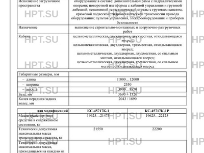 | Исполнение загрузочного пространства | оборудование в составе: дополнительной рамы с гидравлическими опорами; поворотной платформы с кабиной управления и грузовой лебедкой; секционной телескопической стрелы с грузовым канатом, крюковой подвеской; гидромеханической трансмиссии привода оборудования; пультов управления, электрооборудования и приборов безопасности |