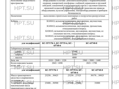 | Тип ТС | установленным в пункте 2.2 приложения № 5 к техническому регламенту Таможенного союза «О безопасности колесных транспортных средств», для передвижения транспортных средств по территории государств - членов Таможенного союза необходимо оформление специального разрешения, в случае фактического превышения установленных значений. Наименование транспортного средства, определяемое его назначением: специальный, кран автомобильный. Показатели масс не могут превышать максимальных для конкретного шасси, указанных в одобрении типа шасси и в его сопроводительной документации. Транспортные средства не предназначены для перевозки опасных грузов. Шасси (тип) / Шасси (модификация) / Модификации: 65201 / 65201-53, 65201-54, 65201-B5 / КС-65740-8; 6540 / 6540-А5 / КС-55717К-1, КС-55735-6, КС-65740-6. |