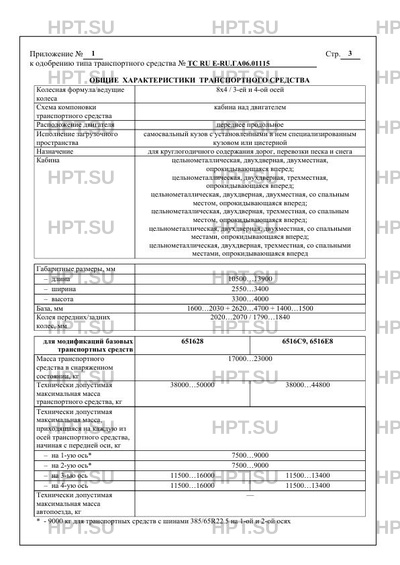 | Тип ТС | Транспортные средства изготавливаются на базе транспортных средств модификаций: 6516C9, 651628, 6516E8 В связи с несоответствием параметров транспортного средства значениям, установленным в пунктах 1.1, 1.2, 2.1, 2.2 приложения № 5 к техническому регламенту Таможенного союза «О безопасности колесных транспортных средств», для передвижения транспортных средств по территории государств - членов Таможенного союза необходимо оформление специального разрешения, в случае фактического превышения установленных значений. Показатели масс не могут превышать максимальных для конкретного базового транспортного средства, указанных в одобрении типа транспортного средства и в его сопроводительной документации. Наименование транспортного средства, определяемое его назначением: комбинированная дорожная машина. |