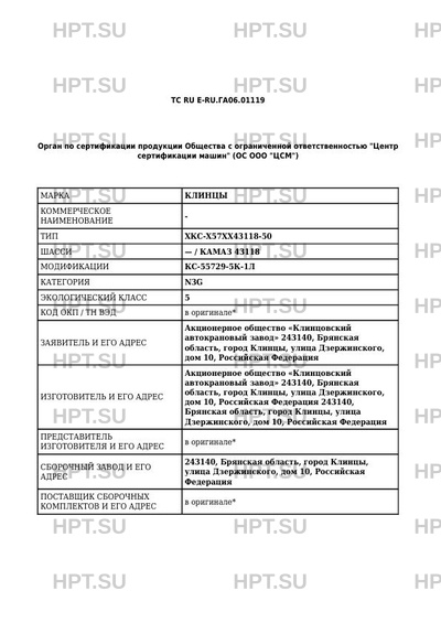 | Номер документа | ТС RU Е-RU.ГА06.01119 |