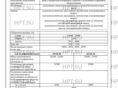 | Базовое ТС / Шасси | КАМАЗ 43118 |