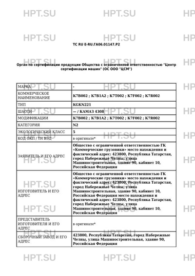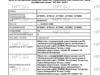 | Заявитель | Общество с ограниченной ответственностью ГК "Коммерческие грузовики" место нахождения и фактический адрес: 423800, Республика Татарстан, город Набережные Челны, улица Машиностроительная, здание 90, кабинет 10, Российская Федерация |