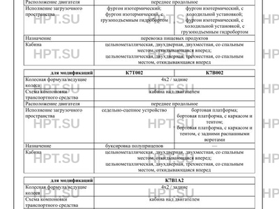 Исполнение загрузочного пространства фургон изотермический; фургон изотермический, с грузоподъемным гидробортом фургон изотермический, с холодильной установкой; фургон изотермический, с холодильной установкой, с грузоподъемным гидробортом седельно-сцепное устройство бортовая платформа; бортовая платформа, с каркасом и тентом; бортовая платформа, с каркасом и тентом, с задними распашными воротами бортовая платформа, КМУ за кабиной; бортовая платформа, с каркасом и тентом, КМУ за кабиной