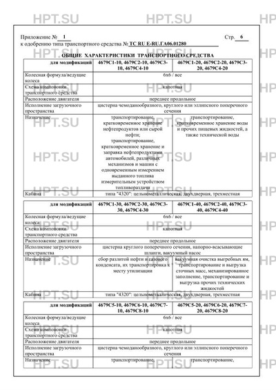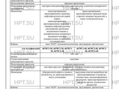| Тип ТС | Наименование транспортного средства, определяемое его назначением: для 4679D1, 4679D3 - автомобиль-тягач лесовозный; для 4679D1-10, 4679D3-10 - автомобиль-тягач лесовозный с ГМ; для 4679D9, 4679D0 - автомобиль-тягач трубовозный; для 4679D2, 4679D4 - сортиментовоз; для 4679D2-10, 4679D4-10 - сортиментовоз с ГМ; для 4679Е1, 4679Е2, 4679Е3, 4679Е4 - автомобиль бортовой с КМУ; для 4679F1-10, 4679F1-20, 4679F2-10, 4679F2-20, 4679F3-10, 4679F3–20, 4679F4-10, 4679F4-20 - автомобиль-мастерская; для 4679F1-30, 4679F1-40, 4679F2-30, 4679F2-40, 4679F3-30, 4679F3-40, 4679F4-30, 4679F4-40 - автомобиль-мастерская с КМУ; для 4679H1, 4679H2, 4679H5, 4679H6, 4679G9-10, 4679G0-10 - автомобиль-тягач седельный с КМУ; для 4679G9, 4679G0 - автомобиль-тягач седельный; для 4679C1-10, 4679C2-10, 4679C3-10, 4679C4-10, 4679C5-10, 4679C6-10, 4679C7-10, 4679C8-10 - автоцистерна для перевозки нефти и нефтепродуктов АЦН (Автототопливозаправщик АТЗ); для 4679C1-20, 4679C2-20, 4679C3-20, 4679C4-20, 4679C5-20, 4679C6-20, 4679C7-20, 4679C8-20 - автоцистерна для перевозки воды АЦ; для 4679C1-30, 4679C2-30, 4679C3-30, 4679C4-30, 4679C5-30, 4679C6-30, 4679C7-30, 4679C8-30 - автоцистерна для сбора нефти и газового конденсата АКН; для 4679C1-40, 4679C2-40, 4679C3-40, 4679C4-40, 4679C5-40, 4679C6-40, 4679C7-40, 4679C8-40 - автоцистерна вакуумная МВ; для 4679G1, 4679G2, 4679G5, 4679G6 - автомобиль-самосвал. Использованы аббревиатуры: КМУ - краноманипуляторная установка, ГМ - гидроманипулятор. Транспортные средства модификаций 4679C1-10, 4679C1-30, 4679C2-10, 4679C2-30, 4679C3-10, 4679C3-30, 4679C4-10, 4679C4-30, 4679C5-10, 4679C5-30, 4679C6-10, 4679C6-30, 4679C7-10, 4679C7-30, 4679C8-10, 4679C8-30 относятся к транспортным средствам FL в соответствии с пунктом 9.1.1.2 Европейского соглашения о международной дорожной перевозке опасных грузов (ДОПОГ). код цистерны – LGBF, L4BH. Возможность буксировки прицепа может быть предусмотрена по заказу при условии соответствующей подготовки шасси. Категория: N3 – для 4679G9, 4679G9-10, 4679G0, 4679G0-10, 4679H1, 4679H2, 4679H5, 4679H6. N3G – для 4679Е1, 4679F1-10, 4679F1-20, 4679F1-30, 4679F1-40, 4679C1-10, 4679C1-20, 4679C1-30, 4679C1-40, 4679D2, 4679D2-10, 4679Е2, 4679F2-10, 4679F2-20, 4679F2-30, 4679F2-40, 4679C2-10, 4679C2-20, 4679C2-30, 4679C2-40, 4679Е3, 4679F3-10, 4679F3-20, 4679F3-30, 4679F3-40, 4679C5-10, 4679C5-20, 4679C5-30, 4679C5-40, 4679D4, 4679D4-10, 4679Е4, 4679F4-10, 4679F4-20, 4679F4-30, 4679F4-40, 4679C6-10, 4679C6-20, 4679C6-30, 4679C6-40, 4679C3-10, 4679C3-20, 4679C3-30, 4679C3-40, 4679G1, 4679C7-10, 4679C7-20, 4679C7-30, 4679C7-40, 4679G2, 4679D1, 4679D1-10, 4679D9, 4679C4-10, 4679C4-20, 4679C4-30, 4679C4-40, 4679G5, 4679D3, 4679D3-10, 4679D0, 4679C8-10, 4679C8-20, 4679C8-30, 4679C8-40, 4679G6. Модификация шасси: 4320-1151-61, 4320-1151-63, 4320-1151-71, 4320-1151-73, 4320-1151-75 – для 4679Е1, 4679F1-10, 4679F1-20, 4679F1-30, 4679F1-40, 4679C1-10, 4679C1-20, 4679C1-30, 4679C1-40; 4320-1951-60, 4320-1951-62, 4320-1951-70, 4320-1951-72, 4320-1951-74 – для 4679D2, 4679D2-10, 4679Е2, 4679F2-10, 4679F2-20, 4679F2-30, 4679F2-40, 4679C2-10, 4679C2-20, 4679C2-30, 4679C2-40, 4679G9, 4679G9-10; 4320-6151-71, 4320-6151-73, 4320-6151-75 – для 4679Е3, 4679F3-10, 4679F3-20, 4679F3-30, 4679F3-40, 4679C5-10, 4679C5-20, 4679C5-30, 4679C5-40; 4320-6951-70, 4320-6951-72, 4320-6951-74 – для 4679D4, 4679D4-10, 4679Е4, 4679F4-10, 4679F4-20, 4679F4-30, 4679F4-40, 4679C6-10, 4679C6-20, 4679C6-30, 4679C6-40, 4679G0, 4679G0-10; 5557-1151-60, 5557- 1151-62, 5557-1151-70, 5557-1151-72, 5557-1151-74 – для 4679C3-10, 4679C3-20, 4679C3-30, 4679C3-40, 4679G1, 4679H1; 5557-6151-70, 5557-6151-72, 5557-6151-74 – для 4679C7-10, 4679C7-20, 4679C7-30, 4679C7-40, 4679G2, 4679H2; 55571-1151-60, 55571- 1151-62, 55571-1151-70, 55571-1151-72, 55571-55571 1151-74 – для 4679D1, 4679D1-10, 4679D9, 4679C4-10, 4679C4-20, 4679C4-30, 4679C4-40, 4679G5, 4679H5; 55571-6151-70, 55571-6151-72, 55571-6151-74 – для 4679D3, 4679D3-10, 4679D0, 4679C8-10, 4679C8-20, 4679C8-30, 4679C8-40, 4679G6, 4679H6. |