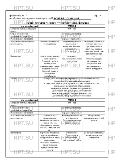 | Оборудование ТС | устройство вызова экстренных оперативных служб с функцией автоматического срабатывания при опрокидывании; устройство ограничения максимальной скорости (функцию устройства ограничения максимальной скорости выполняет электронный блок управления двигателем); устройства увязки; устройства освещения рабочей зоны; бесшовные кабелепроводы защиты электропроводки, заземляющая цепочка и металлический штырь для защиты от статических и атмосферных электрических разрядов, теплозащитный экран на выпускной трубе глушителя, защита топливных баков и аккумуляторных батарей, огнетушители, главный выключатель аккумуляторной батареи (для исполнений для перевозки опасных грузов) по заказу: предпусковой подогреватель двигателя; кондиционер; лебедка; тент; один или два проблесковых маячка автожелтого цвета; дополнительная балка аутригеров (входят в комплект ГМ/КМУ) передние противотуманные фары (кроме транспортны средств на |