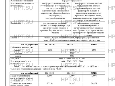 | Исполнение загрузочного пространства | платформа с технологическим оборудованием в составе: насоса высокого давления; водоподающего блока или без него; мерного бака; разборного трубопровода; электрооборудования платформа с технологическим оборудованием в составе: монтажной рамы, насоса с редуктором, емкости и манифольда, состоящего из приемной и напорной линии, системы управления, контрольноизмерительных приборов |