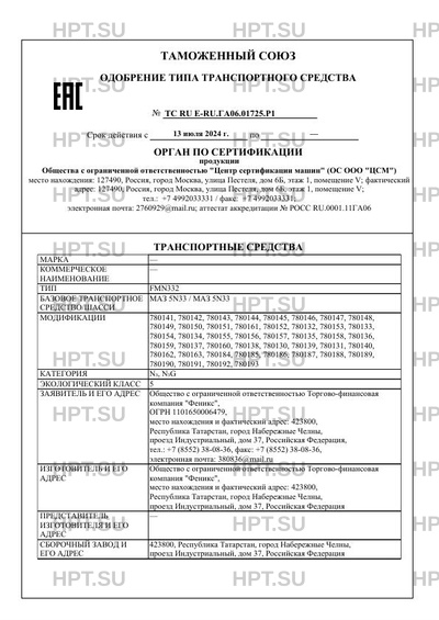 | Номер документа | ТС RU Е-RU.ГА06.01725.Р1 |