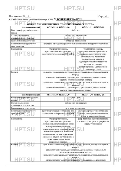 | Оборудование ТС | устройство вызова экстренных оперативных служб с функцией автоматического срабатывания при опрокидывании; устройство ограничения максимальной скорости (функцию устройства ограничения максимальной скорости выполняет электронный блок управления двигателем); для 4671М1-10, 4671М1-11, 4671М1-30, 4671М2-10, 4671М2-11, 4671М2-30: один или два проблесковых маячка автожелтого цвета, бесшовные кабелепроводы защиты электропроводки, заземляющая цепочка и металлический штырь для защиты от электрических разрядов, теплозащитный экран на выпускной трубе глушителя, защита аккумуляторных батарей, огнетушители, аппаратура спутниковой навигации по заказу: предпусковой подогреватель двигателя; кондиционер; лебедка; для 4671М1-11, 4671М2-11: насос, пистолет, счетчик жидкости, рукава; передние противотуманные фары (кроме транспортных средств на шасси, имеющих официальное утверждение на основании Правил ООН № 48-04) |
