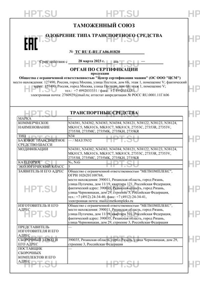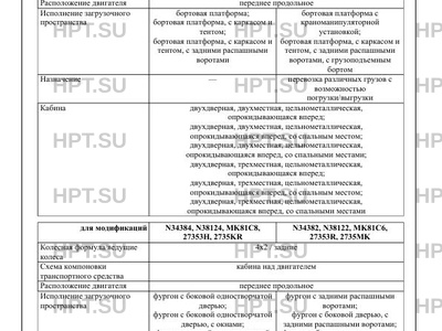 | Тип ТС | В связи с несоответствием параметров транспортных средств значениям, установленным в пунктах 2.1, 2.2 приложения № 5 к техническому регламенту Таможенного союза «О безопасности колесных транспортных средств», для передвижения транспортных средств по территории государств - членов Таможенного союза необходимо оформление специального разрешения, в случае фактического превышения установленных значений. Показатели масс не могут превышать максимальных для конкретного шасси, указанных в одобрении типа шасси и в его сопроводительной документации. Транспортные средства не предназначены для перевозки опасных грузов. Коммерческое наименование Шасси (модификация) Модификации Категория 27353C, 27353R, 27353V, 27353H 5340C5 27353C, 27353R, 27353V, 27353H 2735MC, 2735MK, 2735KH, 2735KR 5340С3 2735MC, 2735MK, 2735KH, 2735KR N3G MK81C5, MK81C6, MK81C7, MK81C8 4381C0 MK81C5, MK81C6, MK81C7, MK81C8 N34381, N34382, N34383, N34384 4381N2 N34381, N34382, N34383, N34384 N3 N38121, N38122, N38123, N38124 438121 N38121, N38122, N38123, N38124 N3 |