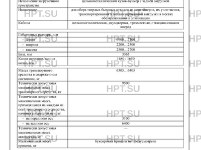 | Назначение | для сбора твердых бытовых отходов из контейнеров, их уплотнения, транспортирования и механизированной выгрузки в местах обезвреживания и утилизации |