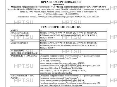 | Орган по сертификации | Орган по сертификации продукции Общества с ограниченной ответственностью "Центр сертификации машин" (ОС ООО "ЦСМ") |