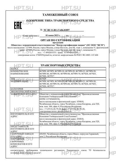 | Номер документа | ТС RU Е-RU.ГА06.01897 |