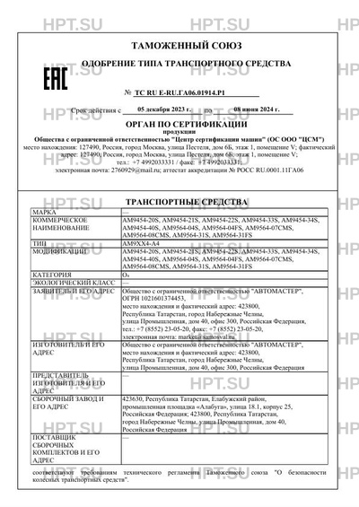 | Тип ТС | AM9XX4-A4 |