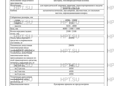 | Исполнение загрузочного пространства | цистерна, топливораздаточная колонка |