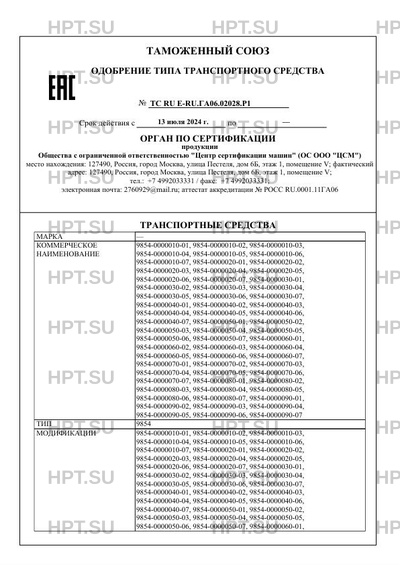 | Тип ТС | 9854 |