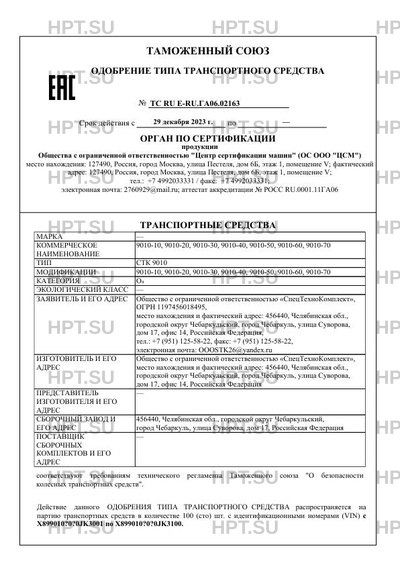 | Тип ТС | СТК 9010 |