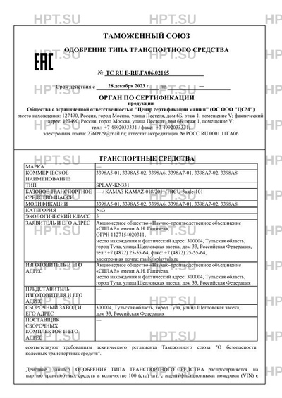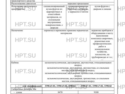Оборудование ТС устройство вызова экстренных оперативных служб с функцией автоматического срабатывания при опрокидывании; устройство ограничения максимальной скорости (функцию устройства ограничения максимальной скорости выполняет электронный блок управления двигателем); один или два проблесковых маячка автожелтого цвета (для 3398A5-01, 3398A5-02, 3398A7-01, 3398A7- 02); бесшовные кабелепроводы защиты электропроводки, заземляющая цепочка и металлический штырь для защиты от статических и атмосферных электрических зарядов, главный выключатель аккумуляторной батареи, теплозащитный экран на выпускной трубе глушителя, огнетушители (для 3398A5-01, 3398A5- 02, 3398A7-01, 3398A7-02) по заказу: предпусковой подогреватель двигателя; кондиционер; лебедка; передние противотуманные фары (кроме транспортных средств на шасси, имеющих официальное утверждение на основании Правил ООН № 48-04)