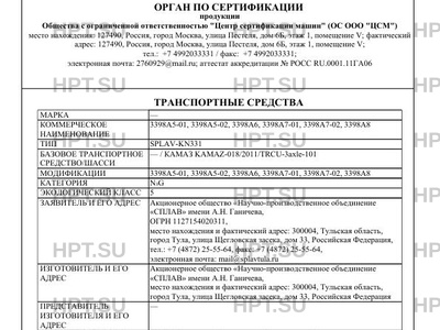 Предприятие-изготовитель Акционерное общество "Научно-производственное объединение "СПЛАВ" имени А.Н. Ганичева, место нахождения и фактический адрес: 300004, Тульская область, город Тула, улица Щегловская засека, дом 33, Российская Федерация