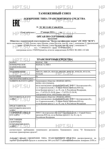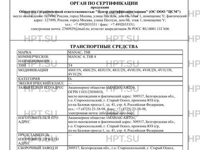 | Марка ТС | MANAC, TSR |