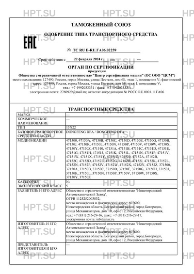 | Номер документа | ТС RU Е-RU.ГА06.02259 |