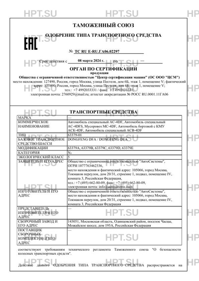 | Номер документа | ТС RU Е-RU.ГА06.02297 |