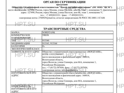 | Заявитель | Общество с ограниченной ответственностью "НОРДТАНК", ОГРН 1193525009897, место нахождения и фактический адрес: 160014, Вологодская область, город Вологда, улица Саммера, дом 66А, помещение 1, Российская Федерация, тел.: +7 (8172) 587056, факс: +7 (8172) 587056, электронная почта: info@nordtank.ru |