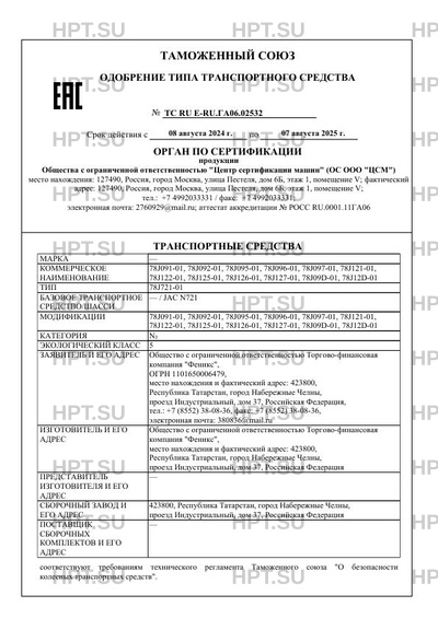 | Номер документа | ТС RU Е-RU.ГА06.02532 |