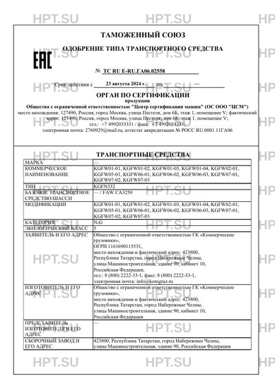 | Номер документа | ТС RU Е-RU.ГА06.02558 |