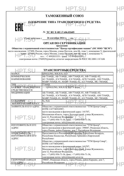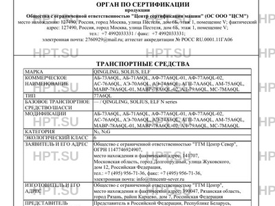 | Марка ТС | QINGLING, SOLIUS, ELF |