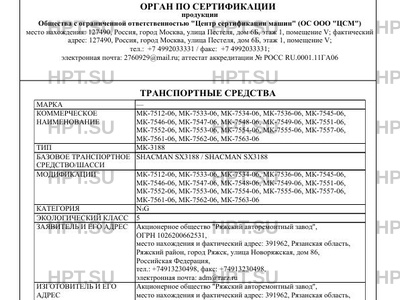 | Орган по сертификации | Орган по сертификации продукции Общества с ограниченной ответственностью "Центр сертификации машин" (ОС ООО "ЦСМ") |