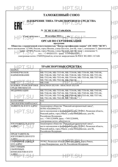 | Номер документа | ТС RU Е-RU.ГА06.02636 |