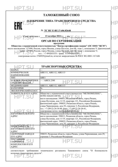 | Тип ТС | ABE1 |