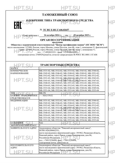 | Предприятие-изготовитель | Акционерное общество "Ряжский авторемонтный завод", место нахождения и фактический адрес: 391962, Рязанская область, Ряжский район, город Ряжск, улица Новоряжская, дом 86, Российская Федерация |