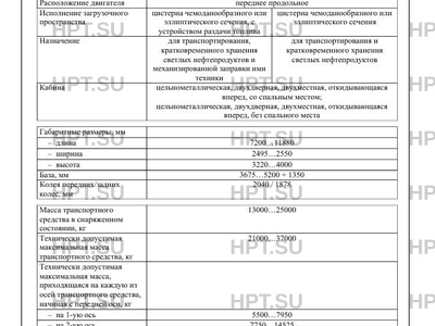 | Исполнение загрузочного пространства | цистерна чемоданообразного или эллиптического сечения, с устройством раздачи топлива цистерна чемоданообразного или эллиптического сечения |