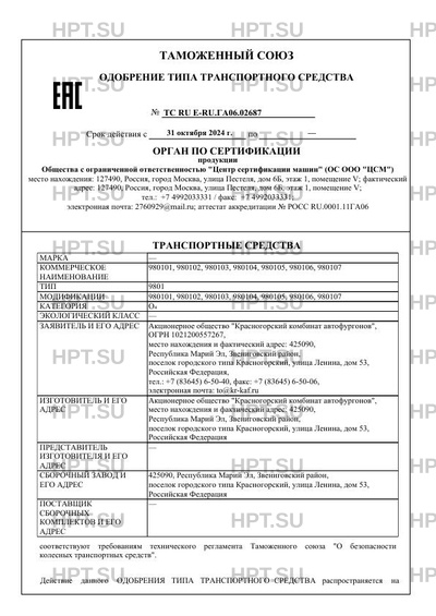 | Тип ТС | 980101,980102,980103,980104,980105,980106,980107 |