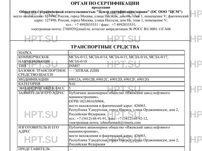 | Заявитель | Публичное акционерное общество «Ижевский завод нефтяного машиностроения», ОГРН 1021801650804, место нахождения и фактический адрес: 426063, Республика Удмуртская, город Ижевск, улица Орджоникидзе, дом 2, Российская Федерация, тел.: +7 (3412) 68-91-91, факс: +7 (3412) 68-92-12, электронная почта: izhneftemash@rimera.com |