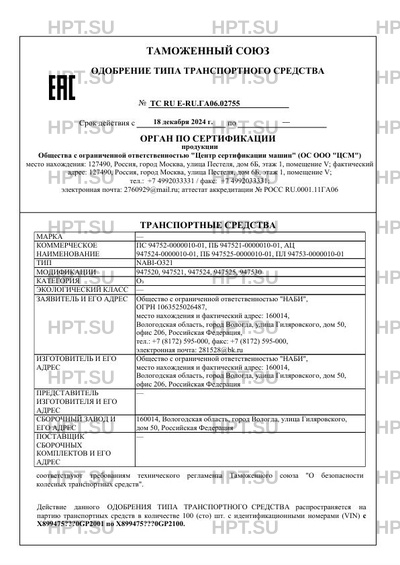 | Коммерческое наименование | ПС 94752-0000010-01, ПБ 947521-0000010-01, АЦ 947524-0000010-01, ПБ 947525-0000… |