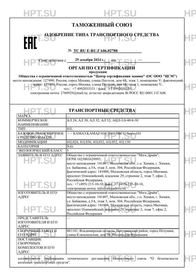 | Номер документа | ТС RU E-RU.ГА06.02788 |