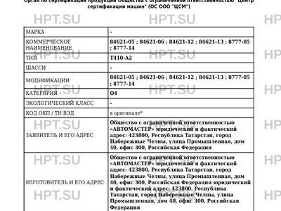 | Коммерческое наименование | 84621-05; 84621-06; 84621-12; 84621-13; 8777-05; 8777-14 |