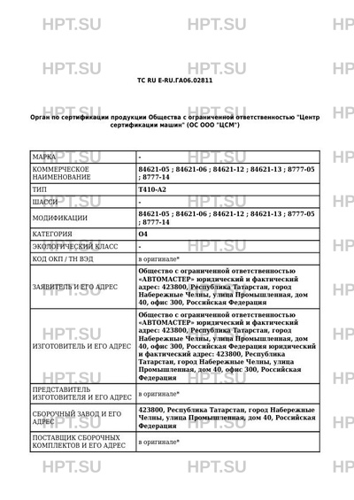 | Тип ТС | T410-A2 ШАССИ |