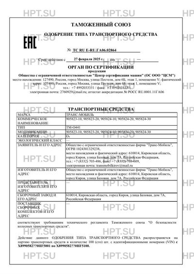 | Марка ТС | ТРАНС-МОБИЛЬ |