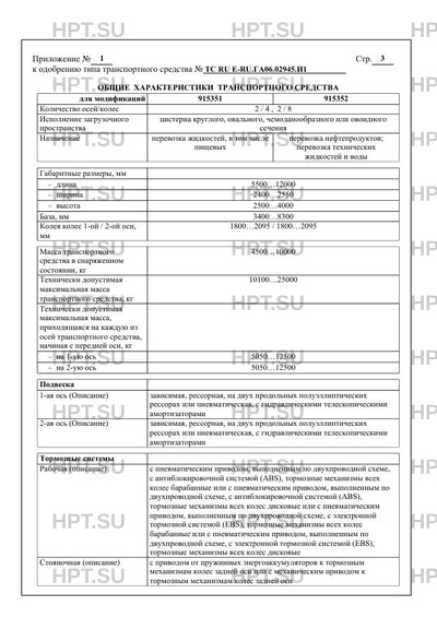 | Оборудование ТС | противооткатные башмаки; огнетушители, бесшовные кабелепроводы защиты электропроводки, заземлительная цепочка и металлический штырь для защиты от статических и атмосферных электрических зарядов (для 915352 в исполнении для перевозки опасных грузов) по заказу: топливные баки; запасное колесо (1 или 2 штуки) |